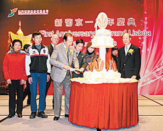 澳博行政總裁何鴻燊在慶祝會(huì)上稱(chēng):“新葡京開(kāi)業(yè)不到1年,已取得近1000萬(wàn)名訪(fǎng)客,可以反映出這個(gè)新項(xiàng)目深受歡迎,同時(shí)也印證了‘葡京’品牌的市場(chǎng)效應(yīng)。我要特別感謝各位勞苦功高的員工,希望大家繼續(xù)努力,為新葡京再創(chuàng)佳績(jī)!”