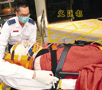 有街坊途經(jīng)該處聽聞巨響,發(fā)現(xiàn)事態(tài)嚴(yán)重,馬上報(bào)警。消防員接報(bào)到場(chǎng),升起云梯到檐篷上將胡某救下,送院不治。