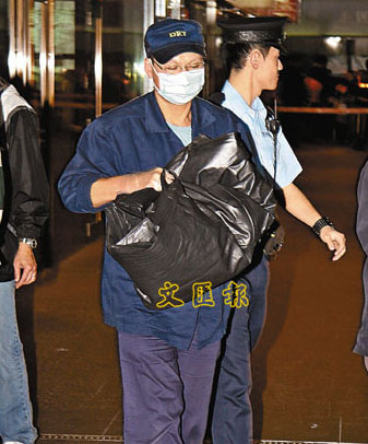 由于現(xiàn)場大廈設有閉路電視監(jiān)察系統(tǒng),相信整個棄尸過程全被拍下。探員事后將錄像帶、鞋袋、外套、毛巾及紙條撿走,然后召仵工到場將尸體送去殮房,以等候法醫(yī)官進一步檢驗,以確定死因。