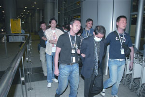 當三人辦理晚上8時15分飛往印度尼西亞雅加達航班的登機手續(xù)時,一直暗中監(jiān)視的司警探員立即采取行動。探員發(fā)現三人利用腰封將毒品“冰”收藏在腰間,以及將包裝成棍狀的毒品藏在內褲內。探員在各人身上均搜獲近2公斤毒品“冰”,一共有5.4公斤,市值約210萬元。