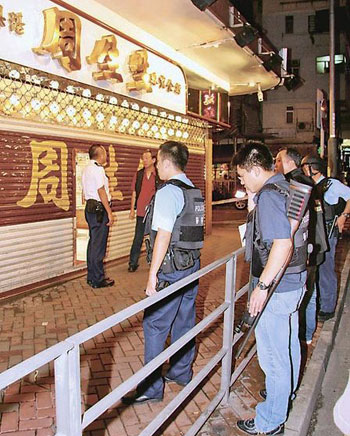 大隊(duì)香港警員趕至,穿上避彈衣,荷槍實(shí)彈兜截仍沒有結(jié)果。被劫金行為周生生金行,開設(shè)在大埔道近北河街交界處地下,營(yíng)業(yè)時(shí)間由上午10時(shí)至下午7時(shí)半。