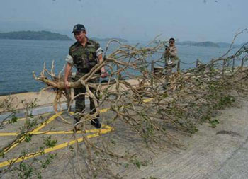 香港水警檢獲一批“九里香”樹。(圖片來源:大公報(bào))