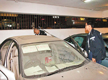 其間,有巡樓的保安員發(fā)現(xiàn)該私家車冒煙,以為發(fā)生火警,上前察看下發(fā)現(xiàn)擋風(fēng)玻璃及司機(jī)位玻璃窗貼有大字報(bào),上面寫著“××銀行謀財(cái)害命,又一城分行!”保安員并發(fā)現(xiàn)濃煙密布的車內(nèi),有一名女子情緒激動(dòng),懷疑她自殺,報(bào)警求助。