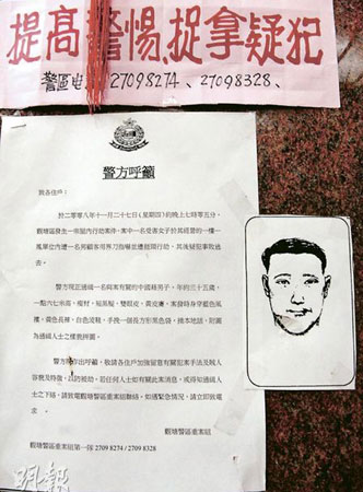 警方1日晨返回土瓜灣道鳳姐兇案現(xiàn)場,向街坊派發(fā)問卷,至1日晚,西九龍總區(qū)刑事總部總督察鐘志明再率領(lǐng)30多名重案組探員登上涉案鳳樓調(diào)查,又持一份區(qū)內(nèi)鳳姐名單,分成多組逐戶拍門派發(fā)問卷。有鳳姐指出,探員曾詢問有否見過一個(gè)年約30余歲、5呎10吋高、身穿黑衣黑褲及背斜袋的可疑男子出沒,又叮嚀她們要小心門戶。