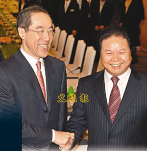 在會議開始前,“兩兄弟”即主動向在場采訪的記者拜個早年,又預(yù)期會議定必成功。湯炳權(quán)笑說,很高興香港在回歸10周年有輝煌成就,而香港于07年經(jīng)濟又快又好地發(fā)展,人民安居樂業(yè)。他坦言,此際要說的還是以往那一句:“香港好,廣東好;廣東好,香港更好!