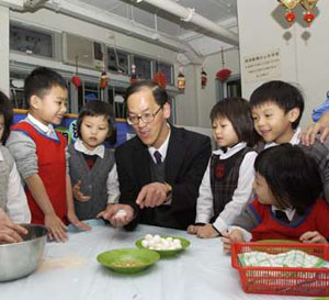 曾德成探訪葵青小區(qū) 與小朋友開心搓湯圓(圖)