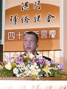 僑總成立四十年來,一直秉承愛國愛澳宗旨,凝聚廣大澳門歸僑,積極參與特區(qū)的社會服務(wù),建樹良多。相信未來,該會定能與時并進,拓展會務(wù),提升服務(wù)素質(zhì)。特區(qū)政府將與僑總等各界社團,和廣大居民一起,為特區(qū)的可持續(xù)發(fā)展而努力奮進。何厚鏵誠邀更多海外僑胞投身澳門的建設(shè),在“一國兩制”下盡情舒展才華。