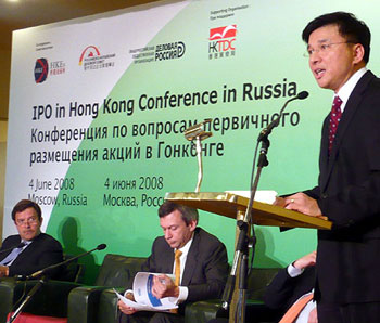 香港財經事務及庫務局局長陳家強在莫斯科舉行的香港上市研討會指出,香港已發(fā)展成為中國內地的主要集資中心。(圖片來源:香港特區(qū)政府網站)
