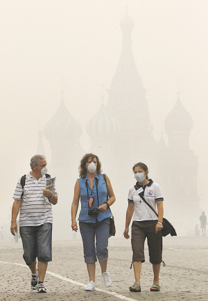 連日來,莫斯科郊區(qū)的特大火災使大量濃煙籠罩莫斯科。這是自1970 年以來莫斯科遭遇的最嚴重的煙霧現(xiàn)象。8 月4 日清晨,市中心的能見度僅為300 米左右,莫斯科東部一些地區(qū),能見度不到20米。在莫斯科留學的中國學生小馬表示,這幾天街上幾乎人人戴著口罩的景象,讓他想起2003 年的“非典”。