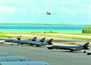 目前,迪戈加西亞島上有深水航道兩條、碼頭一座,可停泊大型航空母艦等戰(zhàn)艦。島上的機場有一條長3600多米的跑道,可起降B-52、B-1、B-2等遠程重型轟炸機;停機坪面積達37萬平方米,可容納100多架戰(zhàn)機。
