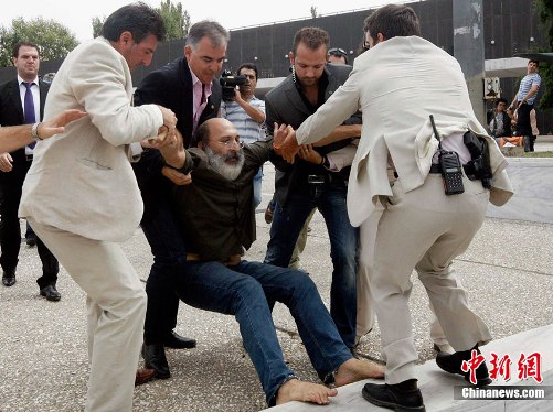 中新網(wǎng)9月12日電 據(jù)臺(tái)灣“中廣新聞網(wǎng)”11日?qǐng)?bào)道,一名希臘男子因不滿希臘政府的經(jīng)濟(jì)緊縮政策,對(duì)希臘總理帕潘德里歐丟擲鞋子。