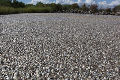 美國(guó)路易斯安那州的一片靠近墨西哥灣的水域近日成了令人瞠目結(jié)舌的“死魚(yú)之!保翰挥(jì)其數(shù)的各種死魚(yú)、螃蟹和海鰻的尸體將水面蓋得嚴(yán)嚴(yán)實(shí)實(shí)。當(dāng)?shù)仉娨暸_(tái)記者甚至在這片位于密西西比河入?诘乃蛑邪l(fā)現(xiàn)了一頭鯨魚(yú)的尸體。各方因此呼吁當(dāng)?shù)卣痛苏归_(kāi)調(diào)查。