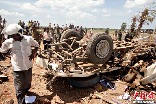 中新網(wǎng)9月17日電 據(jù)美國(guó)媒體報(bào)道,17日,斯里蘭卡軍方發(fā)言人說,該國(guó)東部一處警察局附近的彈藥庫(kù)發(fā)生意外爆炸,爆炸導(dǎo)致至少60人死亡,其中包括兩名中國(guó)人。中國(guó)駐斯里蘭卡使館已經(jīng)確認(rèn)有兩名中國(guó)人在爆炸中死亡。
