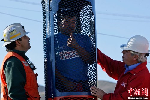 據(jù)迪亞茲介紹,實(shí)施營救前,三個(gè)礦井應(yīng)該協(xié)調(diào)起來,以便統(tǒng)一行動(dòng)。另外,還需要一名救援人員下到井下,指導(dǎo)被困礦工登上“救生艙”。由智利海軍建造的這個(gè)“救生艙”內(nèi)設(shè)有氧氣、照明和飲用水以及與外界聯(lián)絡(luò)的對講機(jī)等設(shè)備。