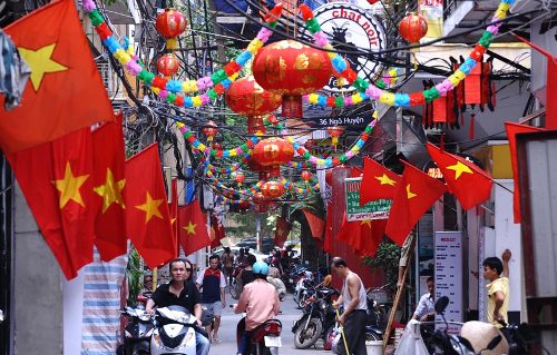 越南官方媒體透露,河內(nèi)的主干道兩側(cè)都掛上了彩燈、燈籠,一些舊城區(qū)近期也及時裝修粉刷過,煥然一新。據(jù)稱越南政府特意撥款6300萬美元(4.21億人民幣)舉行各項慶;顒。