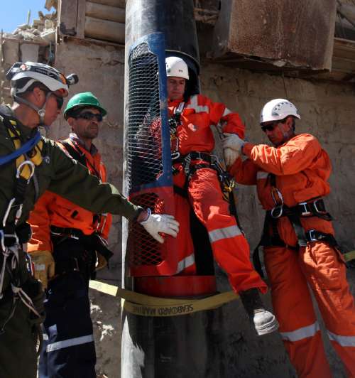 這些礦工們已開始服用100毫克的阿司匹林,以防升井的過程中發(fā)生血管阻塞。他們在最后數(shù)小時,將穿上緊縮襪與特制束身衣,這些衣服裝有電極,以跟蹤他們的心跳、呼吸、體溫和耗氧量。同時,他們僅能食用美國太空總署提供的高熱量流質(zhì)食物,以防在升井的過程中嘔吐。