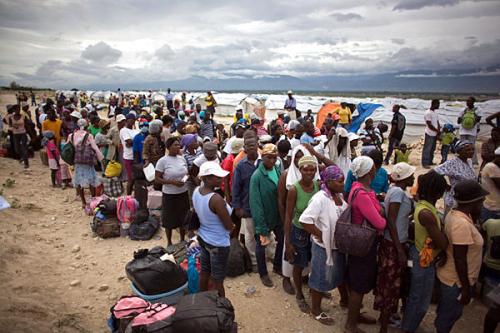 報(bào)道稱,時(shí)速85英里(約合137公里)的狂風(fēng)卷攜著暴雨襲擊了海地首都太子港以西的小城萊奧甘,一些在地震后搭建的臨時(shí)帳篷被洪水淹沒。災(zāi)民們只能淌著齊腰的洪水向地勢(shì)較高的地方轉(zhuǎn)運(yùn)物資。與此同時(shí),人道主義救援人員也在緊急組織災(zāi)民向安全地區(qū)轉(zhuǎn)移。