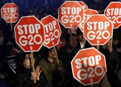 中新網(wǎng)11月8日電 韓國首爾將于本周四、五舉行20國集團(tuán)(G20)峰會(huì),當(dāng)?shù)?日有4萬人在市政廳附近的首爾廣場示威,反對全球化及美韓自由貿(mào)易協(xié)定等,逾8000名防暴警察在場戒備。據(jù)香港《文匯報(bào)》報(bào)道,數(shù)百名群情洶涌的示威者嘗試游行到市中心,與防暴警察沖突,警方發(fā)射胡椒噴霧阻止人群前進(jìn)。