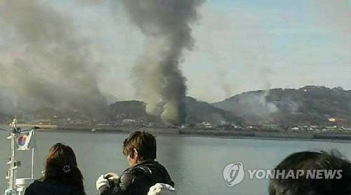 仁川海警延坪派出機(jī)構(gòu)代表金云韓(音)說,山上和整個村莊彌漫著煙霧。居民已經(jīng)回避到防空洞,不清楚是否有人在滅火。