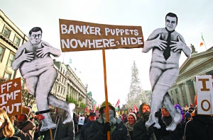 愛爾蘭多個工會27日組織罷工,不少人冒著嚴(yán)寒抵達都柏林,參加游行,抗議政府為爭取金融援助而制定的削減財政赤字計劃。