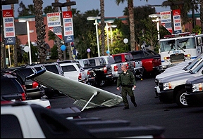 這起事故是發(fā)生在洛杉磯近郊的科洛納(Corona)市,兩家自用小型飛機(jī)在空中相撞后,其中一架飛機(jī)墜落到一個停車場,除了兩架飛機(jī)上的各2名駕駛和2名乘客人共4人之外,墜落的飛機(jī)殘骸直接撞擊到1輛停在停車場上的汽車,結(jié)果車上的1人喪生。