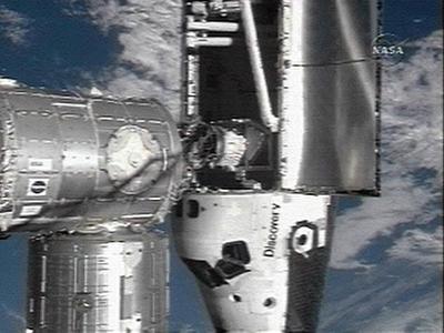 美國發(fā)現(xiàn)號航天飛機(jī)成功與國際空間站對接(圖)