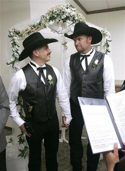 據(jù)美國《明報(bào)》報(bào)道,66歲的泰勒跟54歲同志情人奧爾森,多年來一直爭取同性婚姻權(quán)利,正是他們的上訴,最終促成加州最高法院推翻州政府的同性婚姻禁令。兩人已準(zhǔn)備在16日下午5點(diǎn)01分結(jié)婚,成為洛杉磯縣區(qū)首對(duì)正式同志“夫妻”。泰勒說﹕“我們準(zhǔn)備在法院外結(jié)婚,因?yàn)檫@是我們多年來斗爭的地方,在這兒結(jié)婚宣布‘我們勝利’,無疑是美妙的事。”在加州同志勝地西好萊塢,有酒店表示,在最高法院上月裁定同性婚姻合法后,入住率不斷攀升,“我們17日的房間差不多已經(jīng)訂滿,未來一周也差不多。以往我們的入住率不會(huì)這樣高!