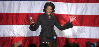 隨著美國民主黨總統(tǒng)候選人巴拉克·奧巴馬當選總統(tǒng)的呼聲越來越高,奧巴馬的妻子米歇爾也成為媒體關(guān)注的焦點。如果奧巴馬當選總統(tǒng),那么米歇爾也將創(chuàng)下兩項紀錄:第一位非洲裔總統(tǒng)夫人、個子最高的“第一夫人”。