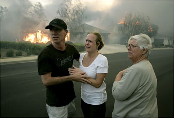 據(jù)英國廣播公司報道,目前,在受災(zāi)嚴(yán)重的圣塔巴巴拉附近,已有幾所價值數(shù)百萬美元的豪宅化為灰燼。往東80英里的洛杉磯郊區(qū)西爾瑪,大火吞噬了約500所移動民宅。 再往東,另外一處勢頭強(qiáng)勁的大火在河畔和奧蘭治縣熊熊燃燒,20萬居民被迫緊急疏散。當(dāng)?shù)毓賳T表示,重鎮(zhèn)洛杉磯隨時面臨斷電危險。