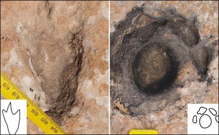 此外,科學(xué)家還在這里發(fā)現(xiàn)了一處約73厘米寬、7.3米長的恐龍尾巴拖動(dòng)痕跡。這在目前世界上已經(jīng)發(fā)現(xiàn)的十幾個(gè)恐龍足印遺址中是非常罕見的。根據(jù)推斷,科學(xué)家還在這里發(fā)現(xiàn)了用四腳行走的恐龍留下的足印。