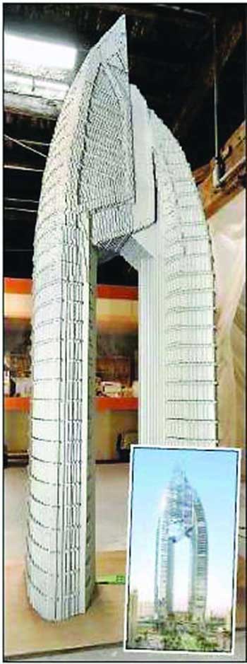 薩瓦亞此次是受迪拜塔的開發(fā)商、阿聯(lián)酋納克希爾地產(chǎn)公司的委托,進行這項藝術創(chuàng)作的。預計這一坐落于迪拜市棕櫚島上的世界最高建筑將超過七百米高,于二○○八年底竣工,明年九月正式對外開放。