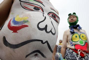 近日,日本的澀川市舉行“肚臍眼”節(jié)。節(jié)日期間,市民們在自己的肚皮上涂上五顏六色的圖案,然后走上街道,載歌載舞。