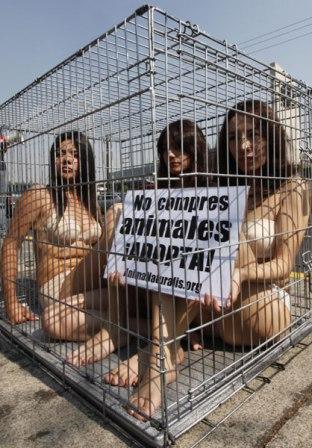 中新網(wǎng)1月4日電 綜合報道,1月3日,墨西哥城3名動物權益組織成員坐在一個籠子中,對買賣寵物的行為表示抗議。他們希望以這種形式喚起人們的注意,呼吁人們不要販賣寵物。