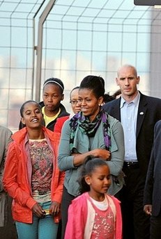 據(jù)臺灣中廣新聞網(wǎng)報(bào)道,10歲的瑪莉亞及7歲的莎夏這次是以美國總統(tǒng)家眷的身分第一次出國訪問,她們和母親在埃菲爾鐵塔參觀了大約四十五分鐘,游客看到美國第一家庭都興奮地大叫,并與她們打招呼,米歇爾則是微笑揮手響應(yīng)。