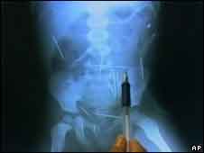 據英國廣播公司報道,男孩的母親把他送到醫(yī)院之后,醫(yī)生經由X光片發(fā)現男孩體內有多支長達兩英寸(約5公分)的縫衣針。其中一支縫衣針還進入了男孩的肺部。