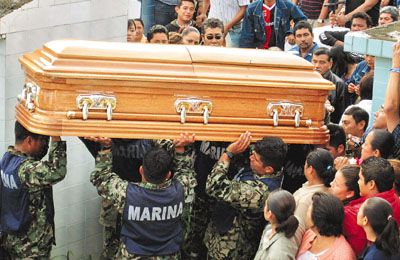 在這名陣亡士兵下葬僅數(shù)小時(shí)后,士兵的母親、姨媽、兄弟和兩個(gè)姐姐就在塔巴斯科州的家中被槍手亂槍打死。