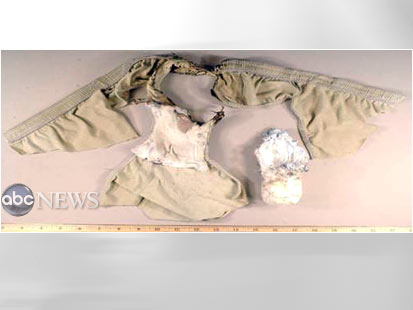 美國廣播公司公布的圖片顯示,內褲炸彈是一條襠部被縫上一包炸藥的內褲。所有照片旁都有一把尺子,以說明相關物品的尺寸。