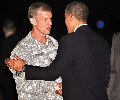 白宮22日傳召在阿富汗喀布爾的麥克里斯特爾,23日將到白宮,據(jù)稱奧巴馬“憤怒”。奧巴馬是有權(quán)力辭退麥克里斯特爾,前任的司令就是因?yàn)榘讓m希望有“新思維”而被炒,現(xiàn)時(shí)未知麥克里斯特爾會否丟官。而美防長蓋茨批評他“犯下大錯(cuò)”。