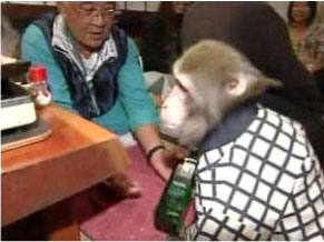 據(jù)臺(tái)灣“今日新聞”報(bào)道,日本古色古香的居酒屋,除了滿滿的人潮外,這里的服務(wù)生也是店里一大特色。老板飼養(yǎng)的猴子轉(zhuǎn)身一變成為店內(nèi)招牌服務(wù)生,讓民眾用餐感覺(jué)大不同。小猴子穿上跟員工一樣的格子制服,拎著酒瓶幫客人倒酒,意外受到顧客歡迎,還有民眾表示,“小猴子有些動(dòng)作,甚至做得比人還好!”使得居酒屋的業(yè)績(jī)暴增2成以上。