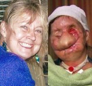 查拉-納什(Charla Nash)一現身節(jié)目,現場觀眾都非常震驚,即使見多識廣的歐普拉,也坦言從來沒見過這么可怕的面孔,就算是燒燙傷患者都沒有傷成這種程度──查拉這張臉,已沒有了眼睛、鼻子、嘴唇,甚至雙手也重殘,10個指頭全被咬斷。