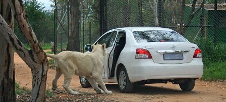 該動物園園方表示,園內(nèi)的獅子每天都喂得飽飽的,人真正被獅子“吃掉”的幾率很小。不過,還是要提醒游客鎖好車門、關(guān)緊車窗,以免被獅子誤傷。