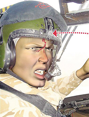 當(dāng)時(shí)塔利班分子的攻勢很激烈,直升機(jī)盤旋良久才逮到一個交火較少的機(jī)會降落下來,不過當(dāng)傷員陸續(xù)登上直升機(jī)時(shí),對手的襲擊又開始活躍起來。當(dāng)傷員接載完畢,伊恩冒著彈雨再起飛時(shí),一粒子彈剛巧擊中他的頭盔前部一塊用于安裝夜視鏡的金屬架,子彈從這里穿透了頭盔,射中他的眉心。鮮血從伊恩的額頭涌了出來,一直流到他的眼睛。此時(shí)更多的子彈射了進(jìn)來,支奴干的控制臺被擊中,穩(wěn)定系統(tǒng)無法工作。但伊恩仍然努力控制直升機(jī),繼續(xù)飛行了大約8分鐘,順利降落基地?哲娤⑷耸空f,如果子彈射低一毫米,又欠缺這位機(jī)師的駕駛技術(shù),機(jī)上所有人相信無機(jī)會生還。