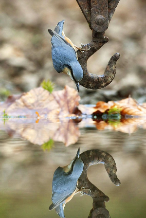 中新網(wǎng)3月23日電 據(jù)英國《每日郵報(bào)》22日報(bào)道,一名英國攝影師在自己建造的掩體下呆了一個(gè)月,只為了拍攝雀鳥臨水嬉戲的照片。功夫不負(fù)有心人,他拍到了一只五子雀(Nuthatch)水中照影自憐的完美照片,十分有趣。