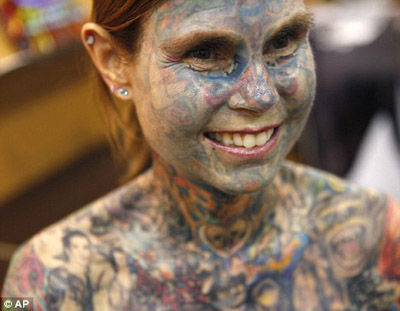 中新網(wǎng)5月27日電 據(jù)英國媒體報道,美國女孩希努斯(Julia Gnuse)全身95%都覆蓋著五顏六色的紋身。她也被吉尼斯世界紀錄評為世界上紋身最多的女人。5月26日,她出席了紐約圖書博覽會,也展示了自己身上的紋身。