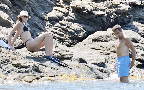 媒體拍到他們?cè)诤_呌斡镜恼掌_@位注重身材的法國(guó)總統(tǒng)站在水中盡力收腹,健康問(wèn)題看似已無(wú)大礙。布呂尼則戴著太陽(yáng)帽和墨鏡,穿著黑色比基尼,大秀身材。他們并沒(méi)有進(jìn)行激烈的運(yùn)動(dòng),有記者只是看到他們?cè)谒谢ハ嘤H吻。