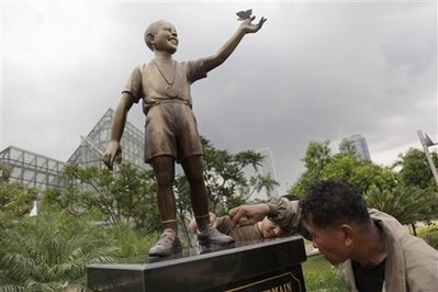銅像被豎立在雅加達(dá)的居民區(qū),童年時(shí)的奧巴馬曾在這里玩耍。
