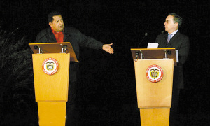 事起烏里韋當時向查韋斯抱怨委內(nèi)瑞拉對哥倫比亞實施的貿(mào)易禁運。這讓查韋斯心煩,同時加重了兩國自去年哥倫比亞與美國簽訂軍事基地建設(shè)協(xié)議以來的矛盾。之后,查韋斯指責烏里韋利用與軍隊有關(guān)聯(lián)的組織謀劃對其的暗殺。