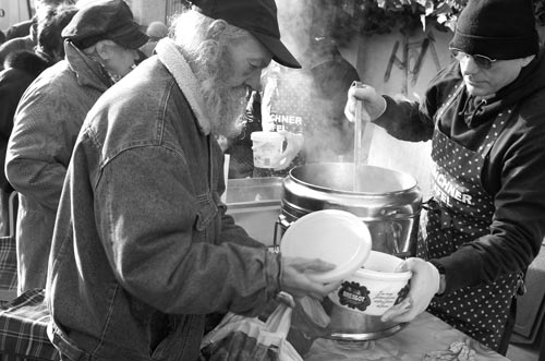 記者曾經采訪過法蘭克福的一個“流浪者之家”。據負責人介紹,當地的機構通常情況下每天能接待100-150人,其中有50名流浪者。記者采訪時,隔壁一間并不寬敞的房間里就有3個正在邊吃面包邊閱覽報紙的流浪漢,一個頭發(fā)蓬亂的男青年吃完一份快餐后,披上破舊的毛毯拉門而去,就像走出自己的家門一樣。