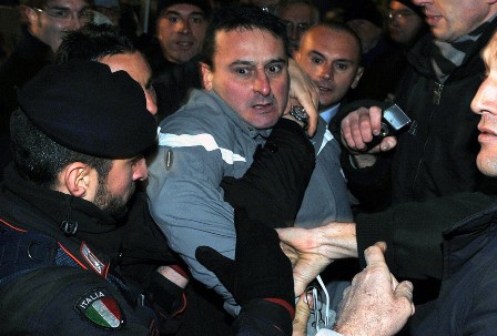 現(xiàn)年42歲的塔爾塔利亞回憶事發(fā)當(dāng)時(shí)的情形道,當(dāng)時(shí)他正打算離開米蘭杜莫廣場,突然聽到群眾集會(huì)的呼喊聲,他走過去看,發(fā)現(xiàn)站在離他不遠(yuǎn)處的就是貝盧斯科尼——他所憎恨的人。他一直認(rèn)為貝盧斯科尼正在“毀掉意大利”,并表示自己“不同意他所說的一切”。于是,他血?dú)馍嫌,只想用盡全力擊倒他,也要“做一個(gè)自己的抗議活動(dòng)”。于是,塔爾塔利亞將手中所持米蘭大教堂模型擲向貝盧斯科尼面部,使其受傷流血。其后,塔爾塔利亞當(dāng)場遭警方拘捕。
