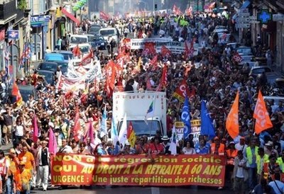 據(jù)新華社電 法國(guó)政府上周宣布退休改革草案,擬將法定退休年齡從目前的60歲提高到62歲。24日,法國(guó)全國(guó)發(fā)生大罷工,數(shù)百萬(wàn)人走上街頭抗議這一“有損退休福利制度”的改革。